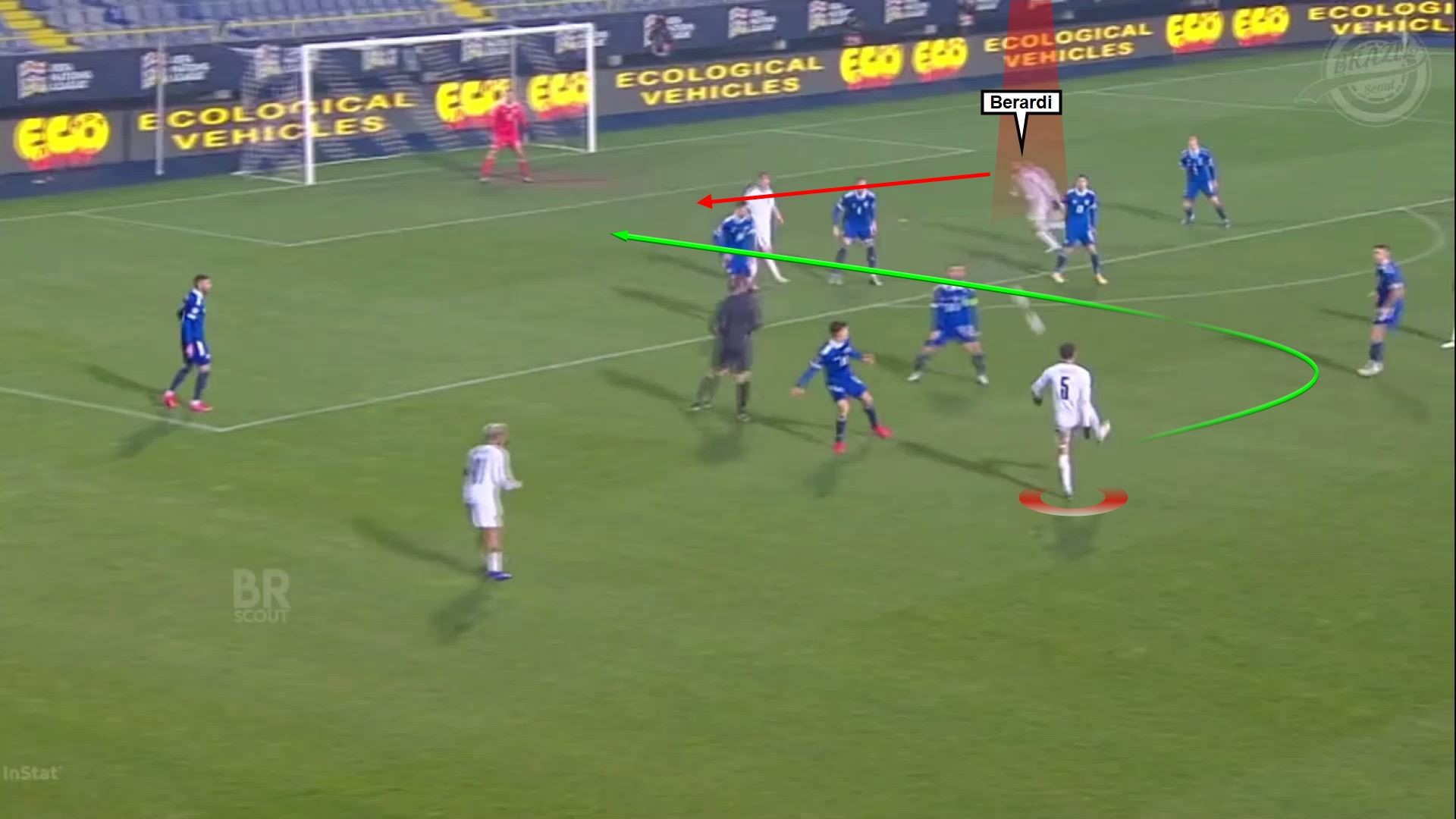 All in all, Berardi is a truly unique talent considering his nationality and playing profile. The Sassuolo winger bears resemblance to players like Riyad Mahrez or Hakim Ziyech – left footers with slender physique who like to cut inside from the right and shoot on goal or link up with other forward players. Such a specific player profile is unique and incredibly rare in Italian football culture, making Berardi stand out among the Azzurri’s other attacking options.