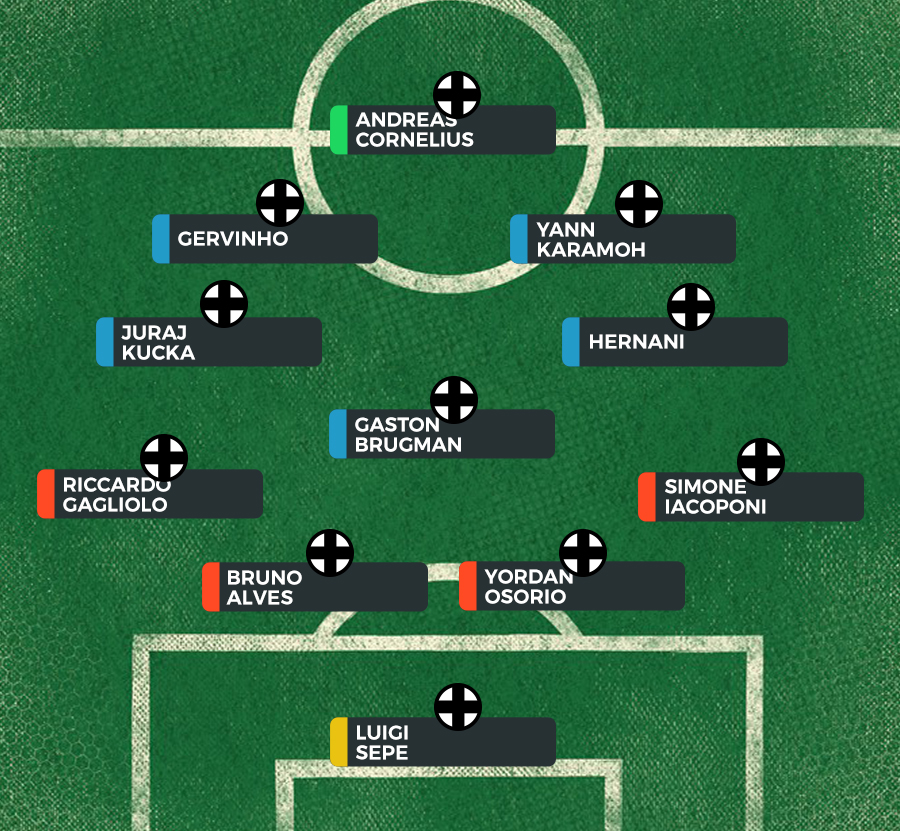 Expected Starting XI (4-3-2-1): Sepe; Iacoponi, Osorio, Bruno Alves, Gagliolo; Hernani, Brugman, Kucka; Karamoh, Gervinho; Cornelius