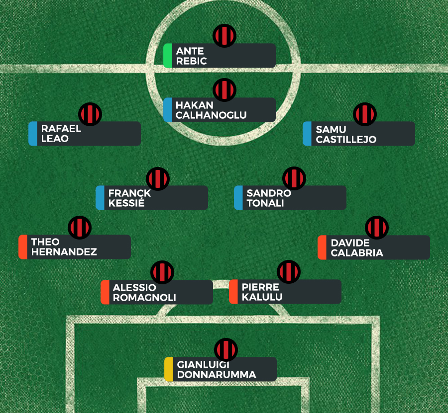 Expected Starting XI (4-2-3-1): Donnarumma; Calabria, Kalulu, Romagnoli, Hernandez; Tonali, Kessié; Castillejo, Leao, Calhanoglu; Rebic