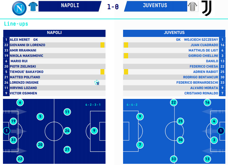 Although Napoli came away with much needed three points against Juventus, their offensive display was one of the worst of this Serie A season. Gattuso’s men were very restricted and cautious in their offensive actions and did not show the kind of attacking mindset combined with the fluidity that we have been accustomed to after watching Napoli for the last couple of seasons.