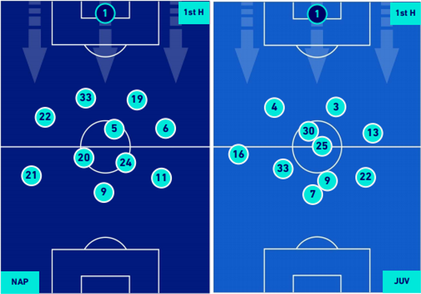 We can see how deep Napoli were defending in the second half compared to Juventus.